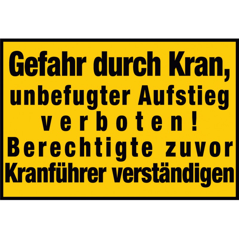 Schild "Gefahr durch Kran, unbefugter Aufstieg verboten ! Berechtigte zuvor Kranführer verständigen"