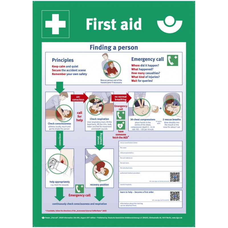 Erste Hilfe nach BGV A8 und DIN 4844, lieferbar in Deutsch und Englisch