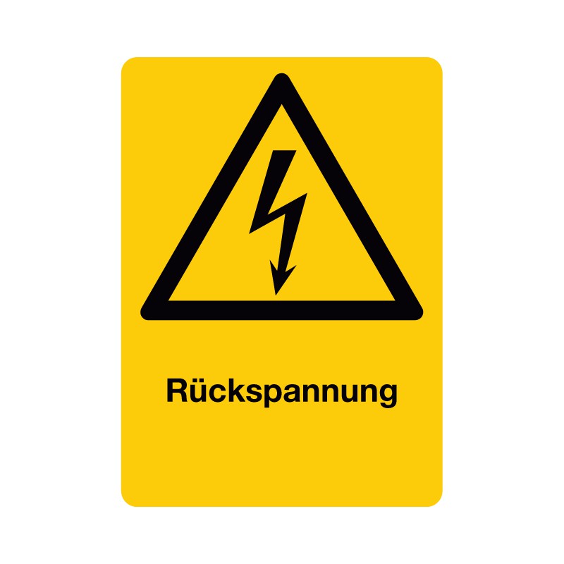 Rückspannung, kombiniert mit Symbol Warnung vor elektrischer Spannung (W012)