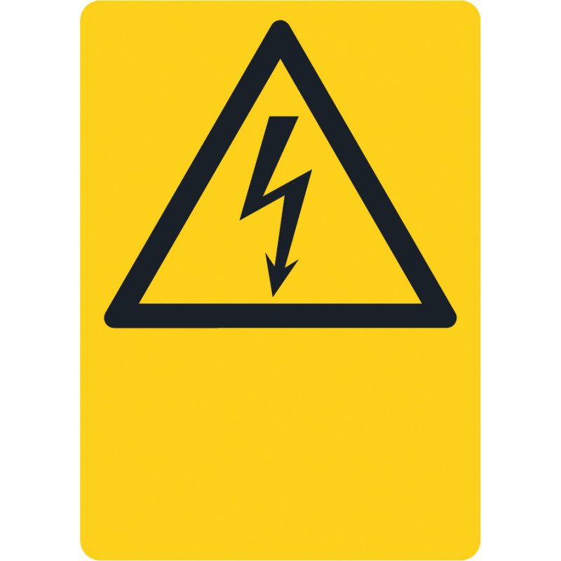 Kombiniertes Schild mit Symbol: Elektrische Spannung, Text darunter nach Wunsch, max. 20 Zeichen