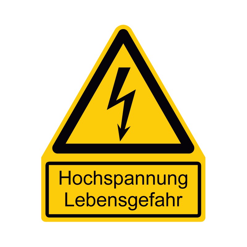 Hochspannung Lebensgefahr kombiniert mit Symbol Warnung vor elektrischer Spannung