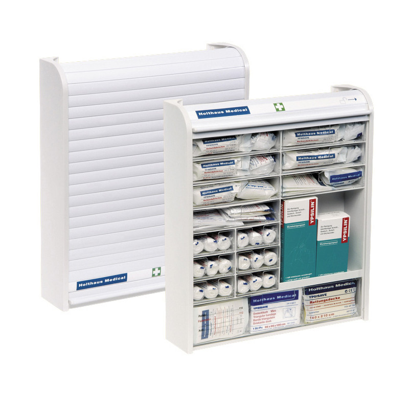 mit Rollo und Kindersicherung sowie 14 Schubladen zur bequemen Einordnung der Füllteile.