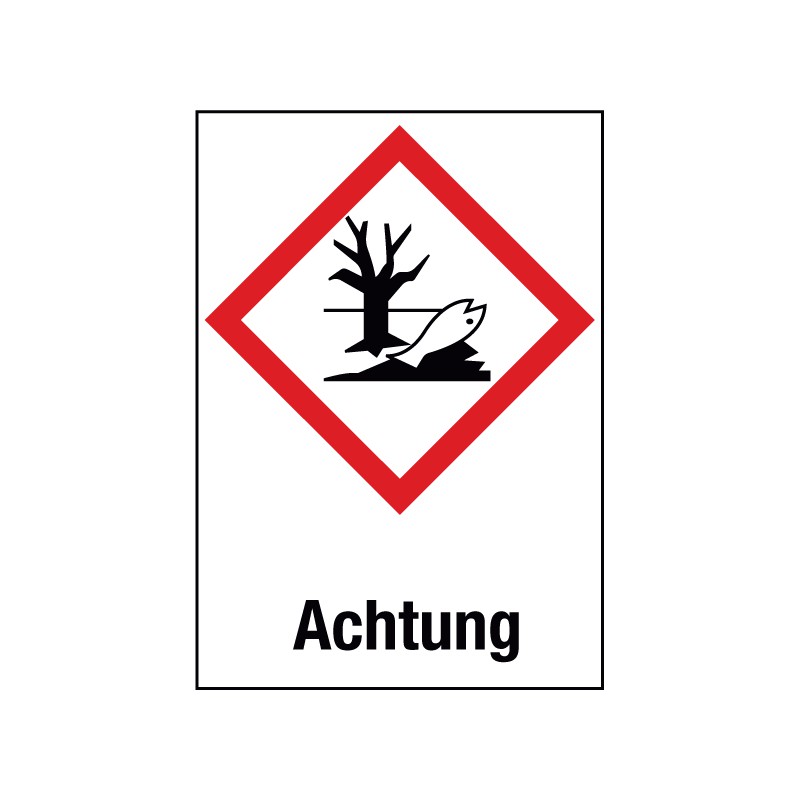 Achtung, Gewässergefährdend (GHS 09), mit Schutzlaminat.