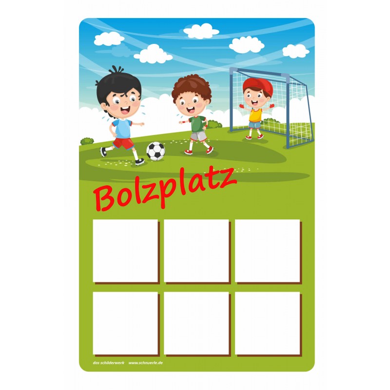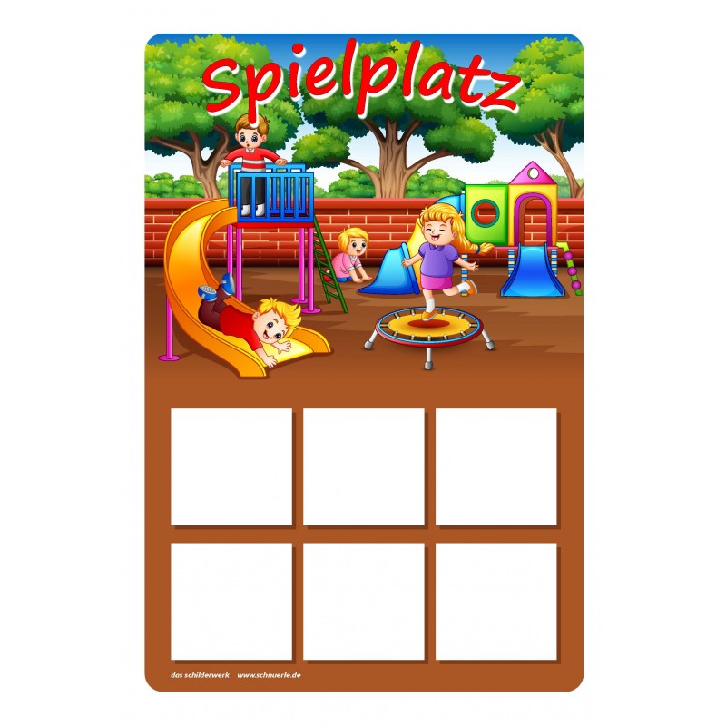 Hinweisschild "Spielplatz","Schulhof" oder "Bolzplatz" mit 6 optionalen Symbolen