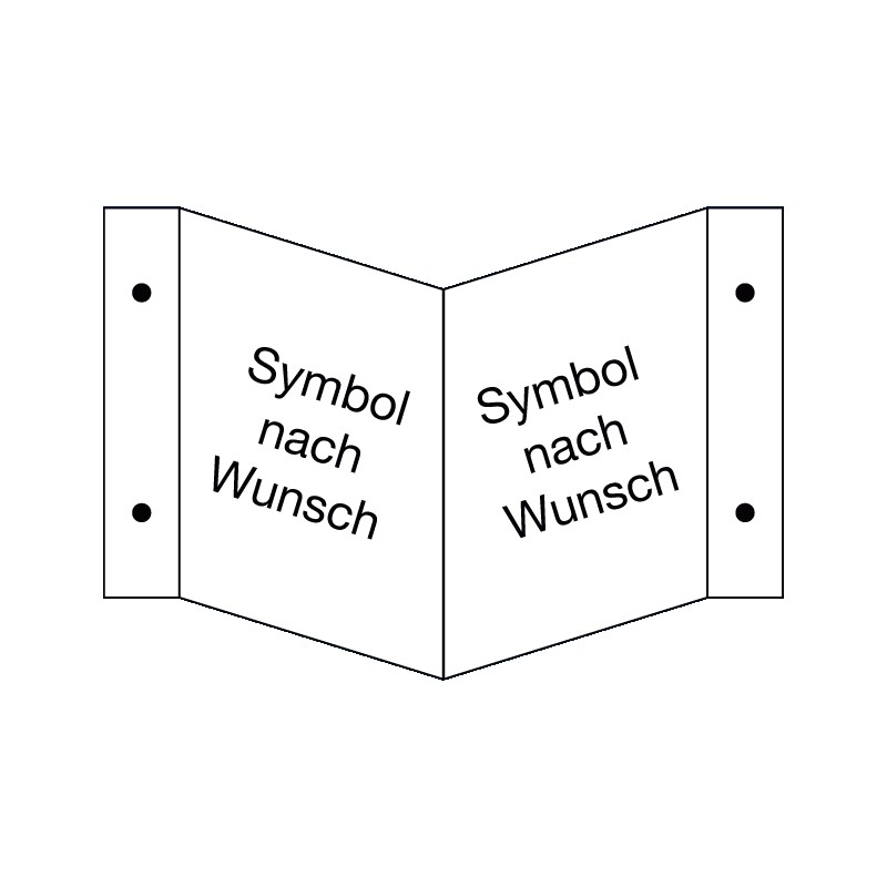 Winkelschild (Notausgang/Rettungsweg) neutral mit Symbolen nach Wunsch