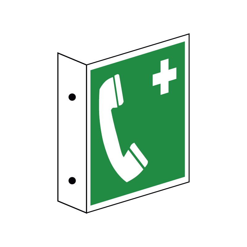 Eigenschaften | Fahnenschild mit 2 Befestigungslöchern, Symbol beidseitig |