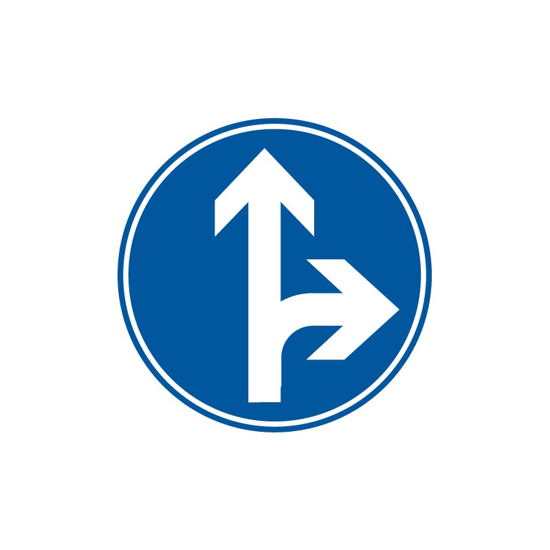 Verkehrszeichen "Vorgeschriebene Fahrtrichtung geradeaus und rechts"