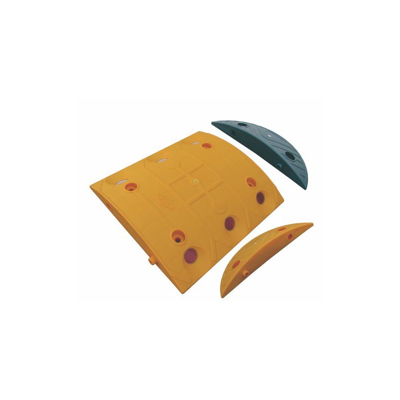 Fahrbahn- / Temposchwelle 20 km/h aus PP, ohne Befestigungsmaterial.Mittelteil 333 x 300 x 50 mm, Endstück 100 x 300 x 40mm