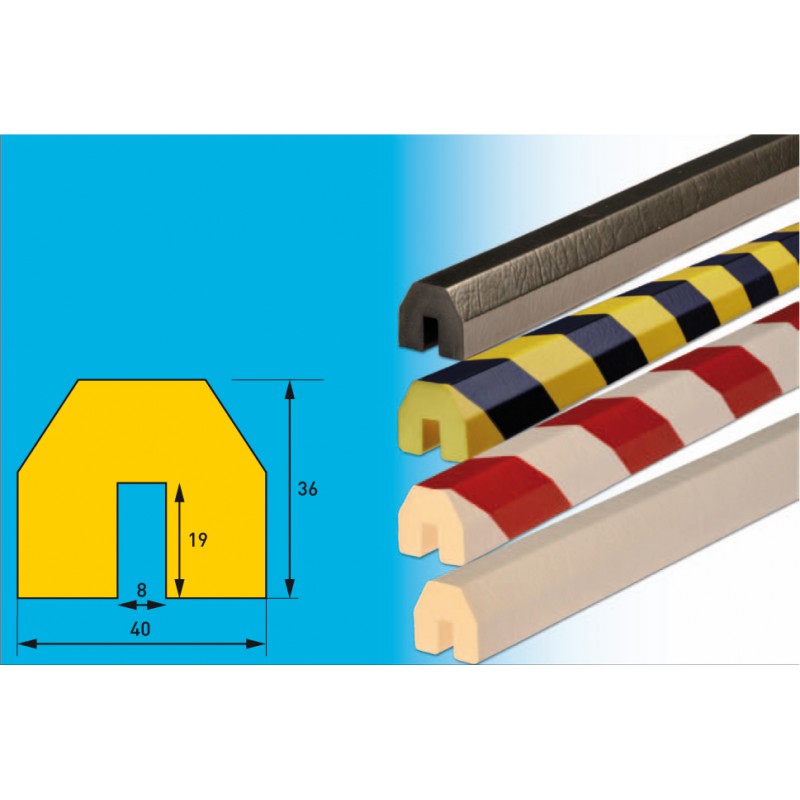 Profil BB - Kantenschutzprofil zum Aufstecken oder auch mit Spezialkleber PU 152 fixierbar. Je nach Bedarf in farblicher Signalwirkung ab scharfen Tischkanten, Glasplatten, Regalböden oder T-Träger montiert, bietet der elastische PU-Schaum idealen Verletzungsschutz. Die Schlitzbreite beim Profil B beträgt 8 mm und eignet sich für Breiten von 6 bis 10 mm.