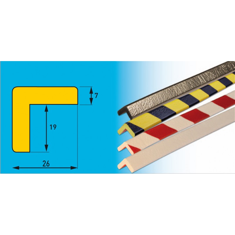 Selbstklebendes Winkelprofil für alle rechtwinkligen Kanten. Stoßabweisend und mit farblicher Signalwirkung ausgerüstet, bietet es idealen Verletzungsschutz an Regalböden, niedrigen Durchgängen oder vorstehenden Kanten.