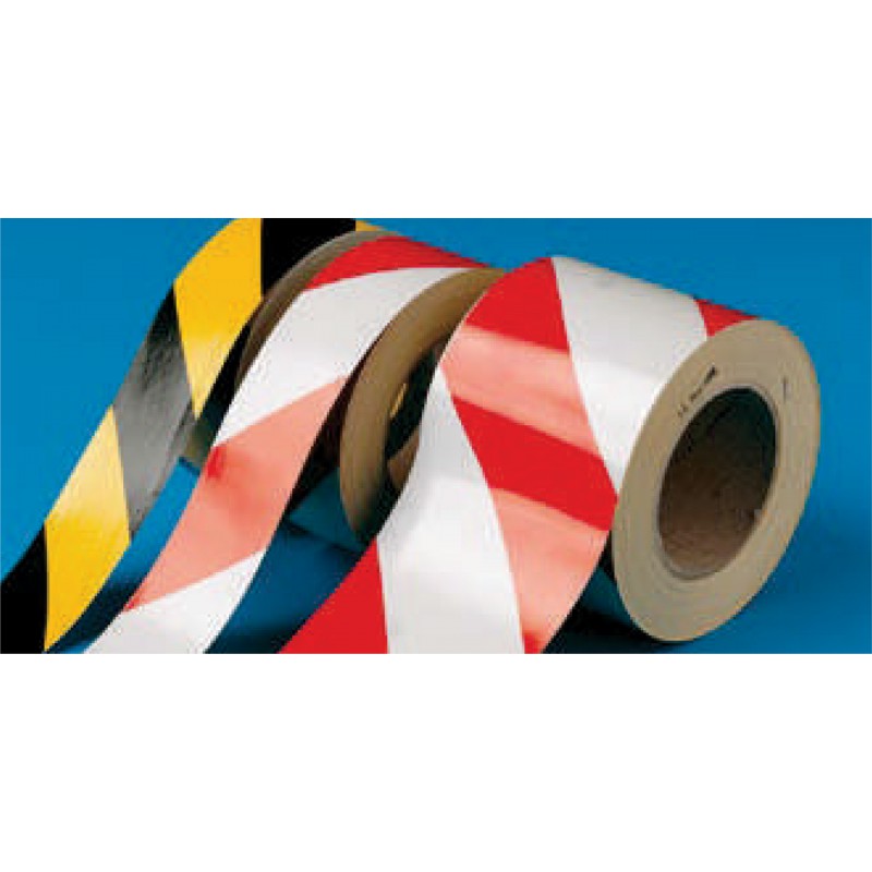 Reflektierendes Markierungsbandm selbsltklebend zur intensiven Markierung von Gefahrenstellen. Besonders in der Dunkelheit erreicht es eine hohe Reflexion durch auftreffendes Licht.